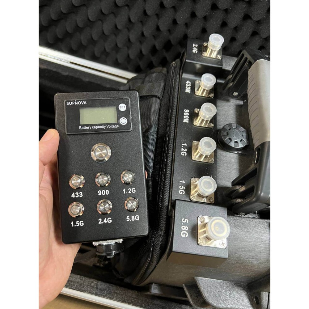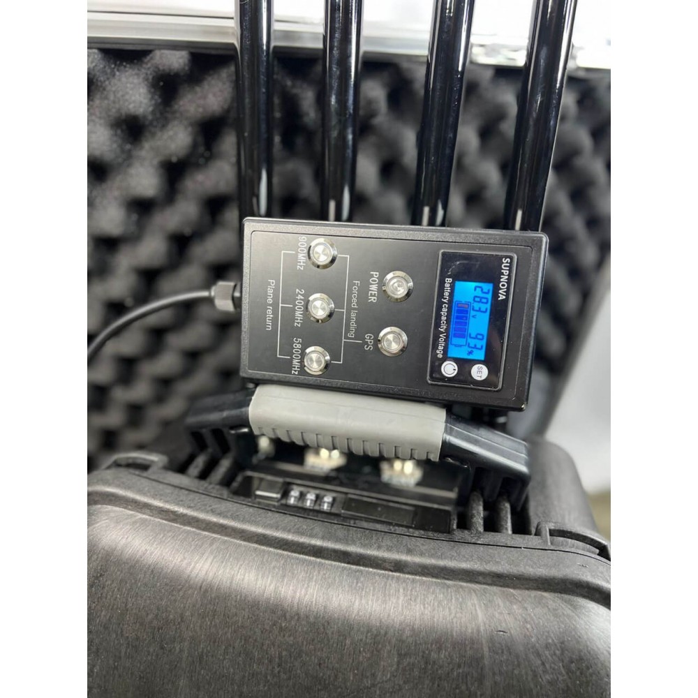 Представленный подавитель сигнала может перехватывать такие известные марки дронов как DJI, Fimi, Autel, а так же и другие виды дронов и беспилотников летающих на гражданских частотах. Анти дрон так же может перехватывать самодельные квадрокоптеры.