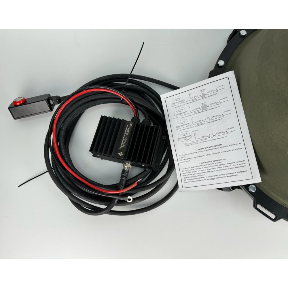 Питание устройства осуществляется от бортовой сети транспортного средства с напряжением 12В или 24В, что позволяет использовать станцию на различных типах техники, включая легковые автомобили, грузовики и самоходные боевые машины. Такое питание обеспечивает стабильную работу устройства без необходимости использования внешних источников питания.