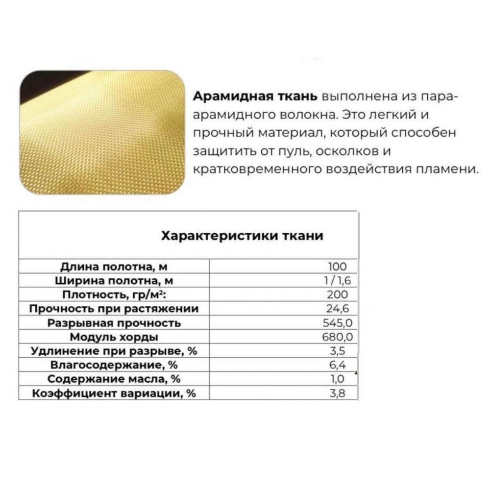 Такие характеристики делают кевларную арамидную ткань весьма востребованным материалом в промышленности, военном деле, строительстве и других отраслях, где требуется сочетание прочности, легкости и надежности.