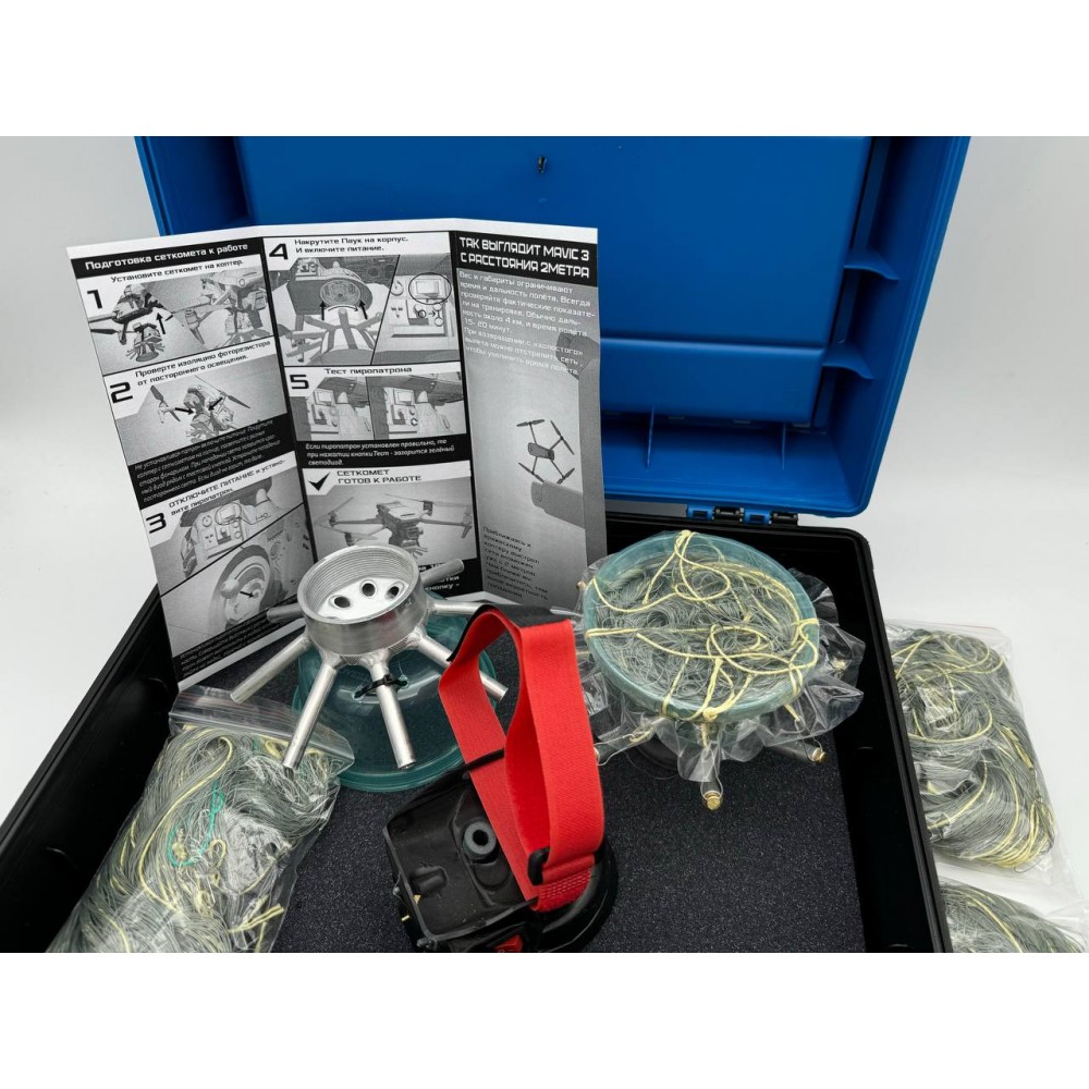 Сменные пауки обеспечивают быструю перезарядку сеткомета. Обычно их покупают в количестве, равном количеству сменных АКБ для квадрокоптера.