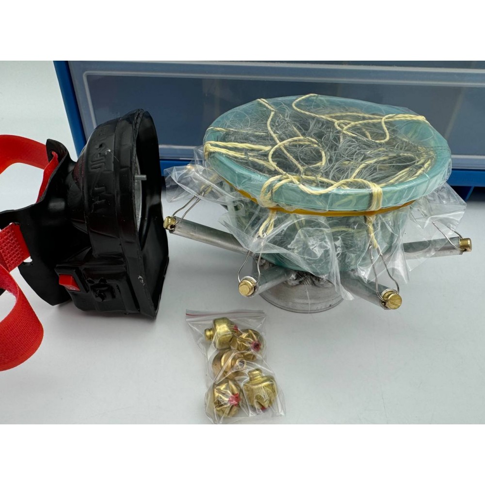 - Алюминиевый "паук" с уложенной сетью и грузиками